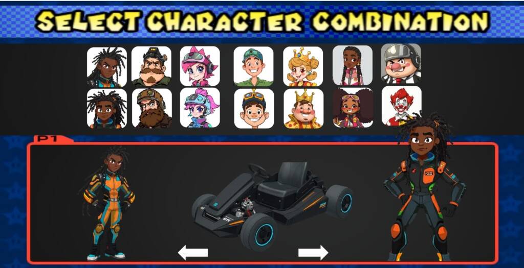 We started with concept sketches of karts, characters, and tracks. Our team defined the game loop and core mechanics while planning the visual style.
